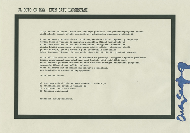 mustesuihkutuloste makulatuuripaperilla, sininen muste, 27,7 x 19,4 cm