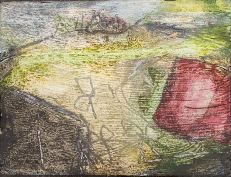 akryyli ja lyijykynä puulle, 15,4 x 11,8 cm