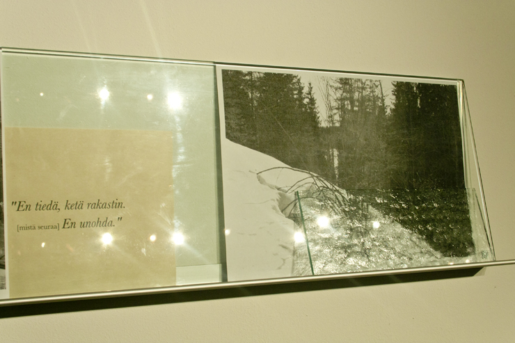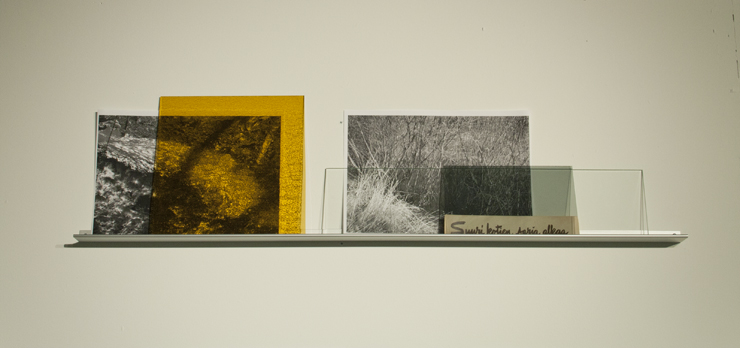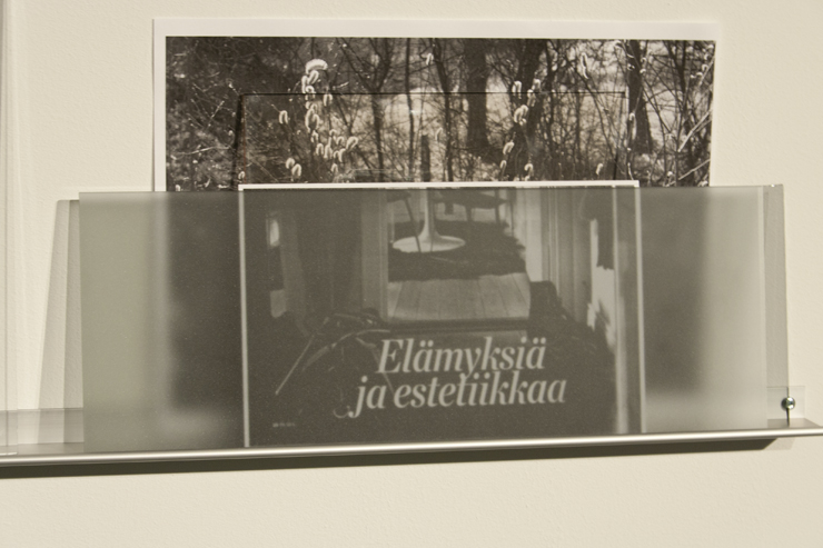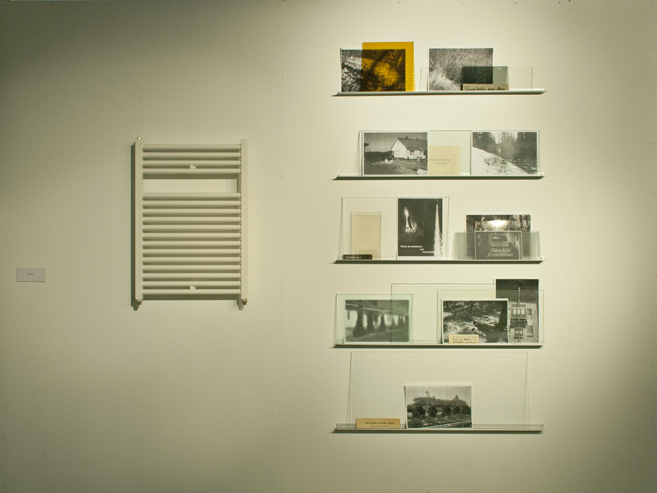 lämpöpatteri, metalliset hyllyt, lasilevyt, valokuvia valokopioina, tekstileikkeitä